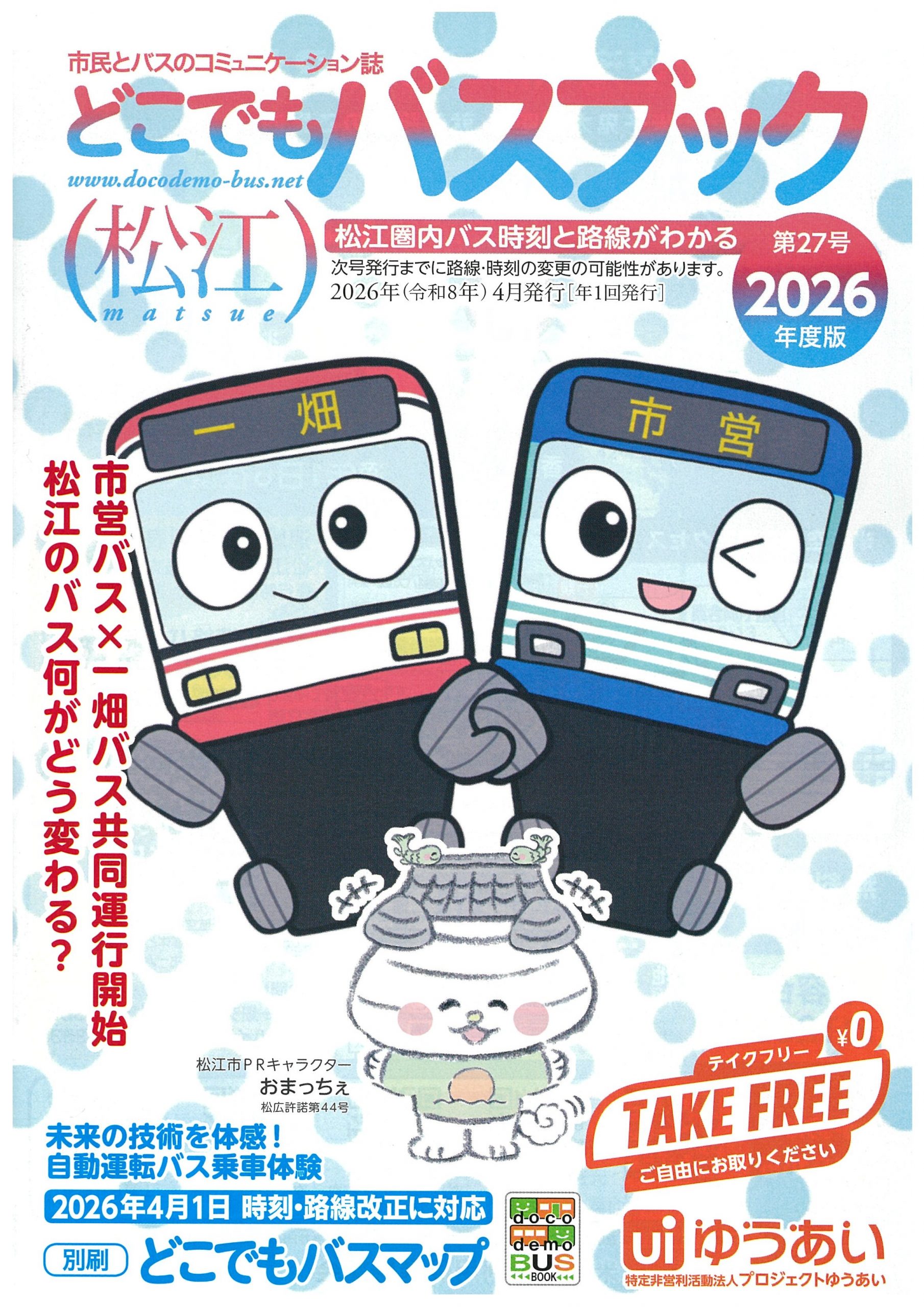 プロジェクトゆうあい設立以来、毎年発行を続けている「どこでもバスブック 松江」。