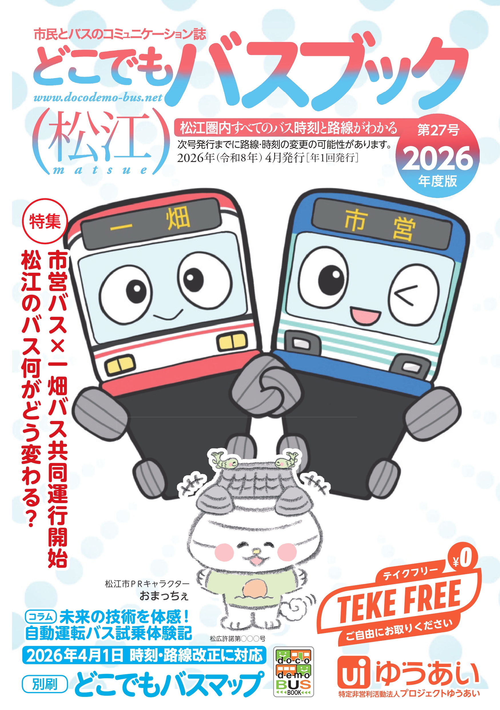 プロジェクトゆうあい設立以来、毎年発行を続けている「どこでもバスブック 松江」。